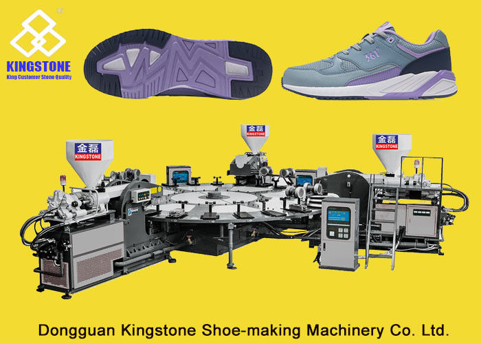 Questa macchina è per prodotti uno/due/outsoles a tre colori con i materiali del tpr del PVC, può utilizzare nelle scarpe di sport, in scarpe di cuoio, nelle scarpe di svago, nelle scarpe della scarpa da tennis, ecc.